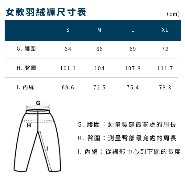 產品名稱:SUPERIOR 女款羽絨長褲800FP