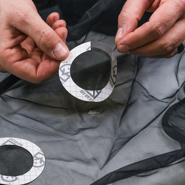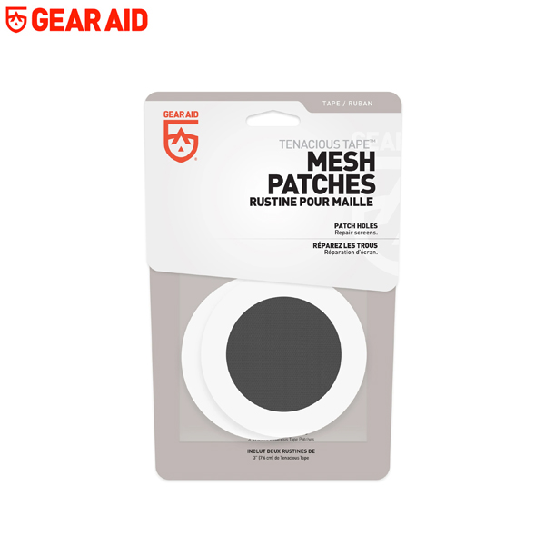 使用 Tenacious Tape Mesh Patches 可即時修補帳篷的網布並防止蚊蟲進入。使用這個方便的修復貼片可快速修復撕裂、破損的網布。內容物包含兩個直徑7.6cm的 Tenacious Tape 網布貼片,可安全用於防蟲紗網或隱形紗網。使用時,只需撕下離形紙並黏上貼片,就能在幾秒鐘內修補完成。