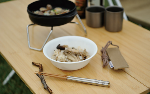 本產品是可拆解成二段、將木製筷頭收納於不鏽鋼製中空筷尾中的組合式環保筷。筷尾握柄部份採用不易滾動的圓角方形設計,筷頭則採用了極具環保功效的「竹」製材質。隨時攜帶個人環保筷、避免使用拋棄式的餐具,是近年來蔚為風潮的環保新概念,Snow Peak自然也要為環保盡一份心力。和武器L全長225mm,適合手掌較小的女性或小朋友使用。