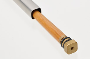 ● 材質:握柄/不鏽鋼;前端部/竹;接頭、封蓋/黃銅;收納袋/聚丙烯