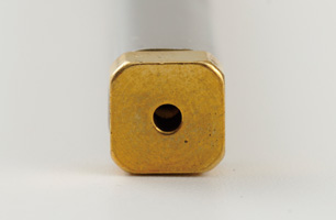 將黃銅零件插入前端、壓接成型。